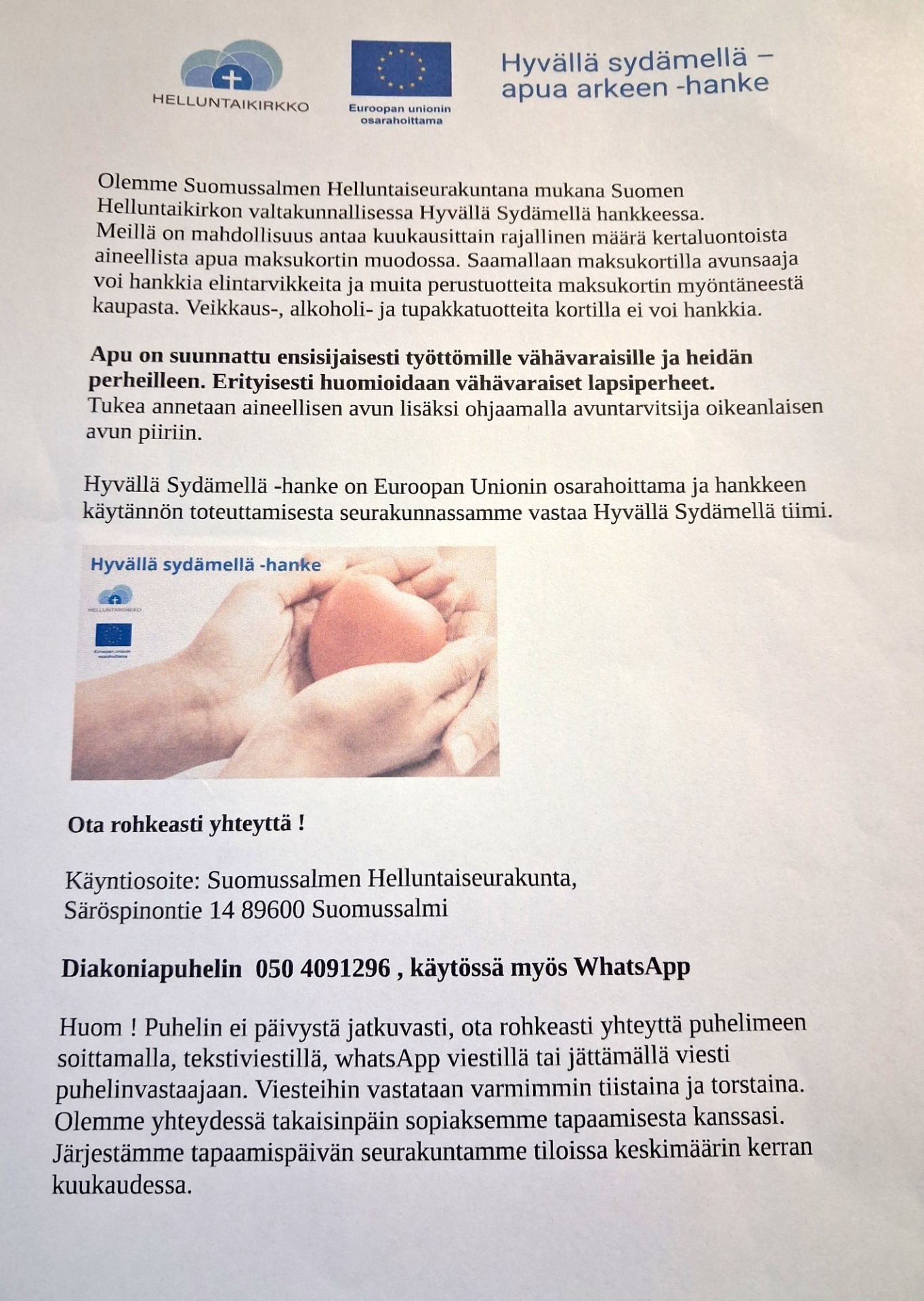 Tavoitteenamme on auttaa ja tukea vähävaraisia ihmisiä käytännön kautta sekä kertoa evankeliumin sanomaa.